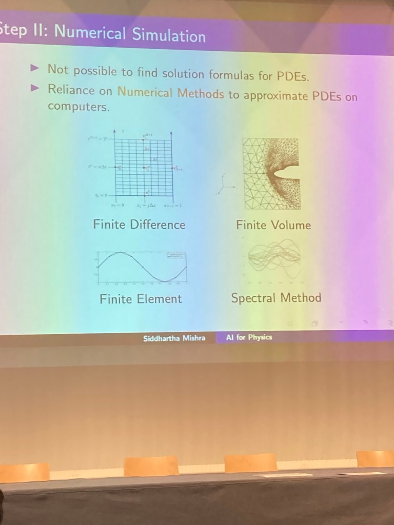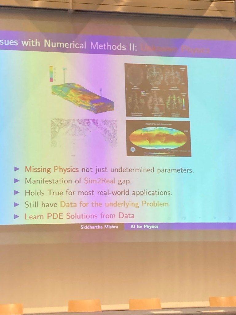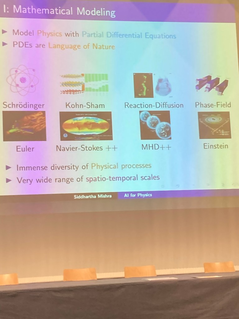 The first keynote was given by Siddharta Mishra of ETH Zurich. Its title had been changed from „AI for PDEs“ to „AI for Physics“. In his talk SM gave a lot of examples where AI „helps“ HPC applications.