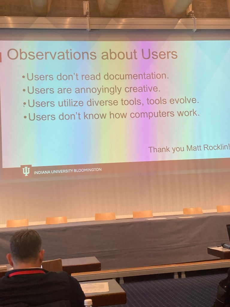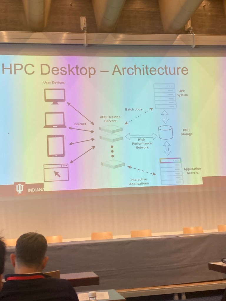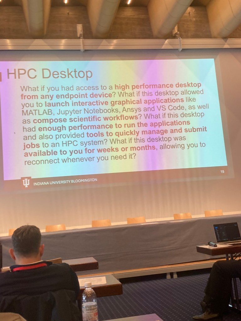 The first „normal“ talk was given by Robert Henschel of Indiana University. He talked about „The Case for High Performance Research Desktop“. Later in a break, I learned that RH is German. I told him that I did not expect very much from his talk but that he outwent my expectations. Of course, he was delighted to hear this. 😉