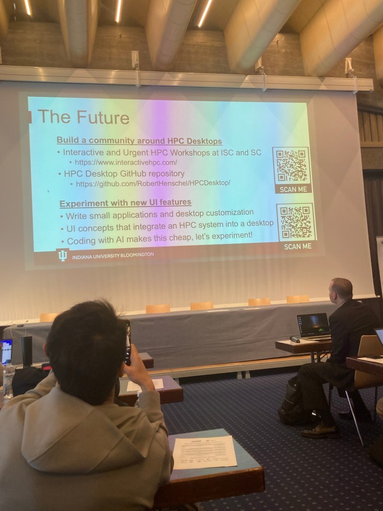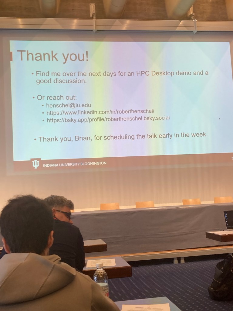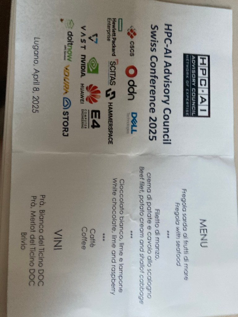 I skipped the other two talks of the first session of the second day: „Developing an ML-ready Framework for Numerical Geodynamic Modelling“ by Marcel Ferrari (ETH) and „Evolving HPC: towards a Reconfigurable Paradigm for a Data-Intensive Era“ by Giordano Mancini (E4), again for answering emails.