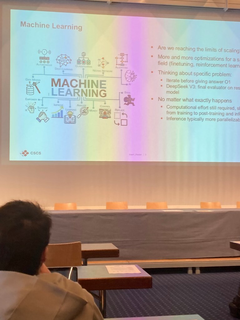 I also skipped the first talk after the break: „Alps Research Infrastructure at CSCS: Enabling World-Class ML Research in Switzeerland“ by Mohamed Fawzi Roberto of CSCS.