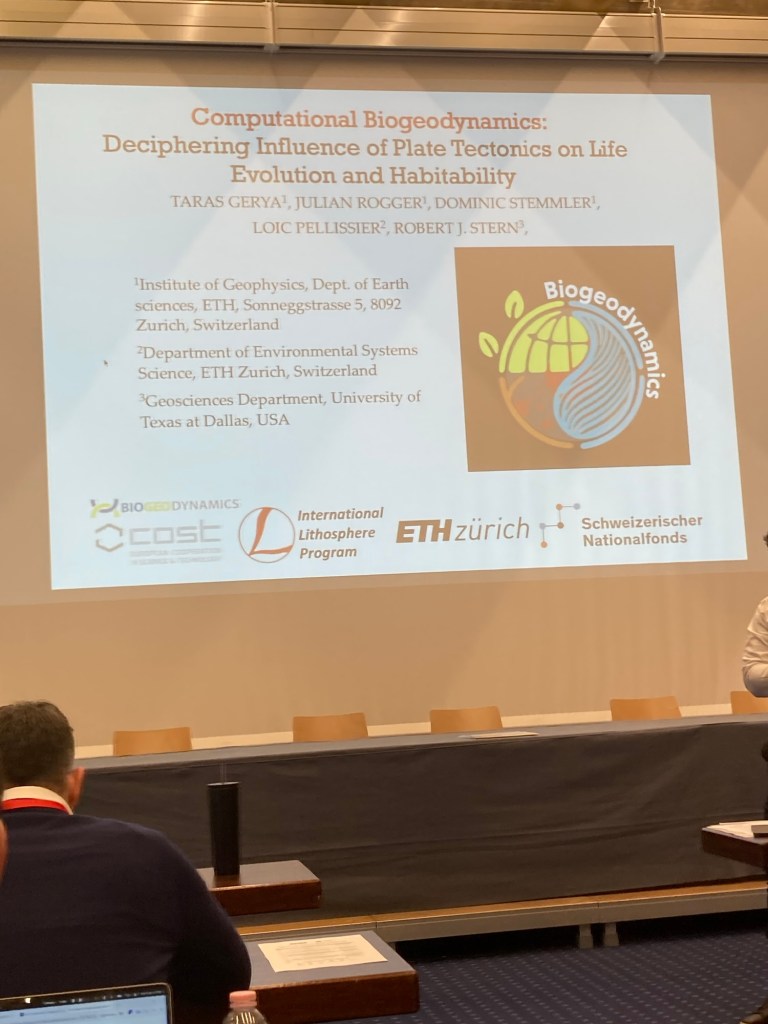 This presentation was very interesting: biogeodynamics is a multi-disciplinary combination of biology, tectonics, climate research etc (a relatively new area of science). A better explanation gave the introductionary slide: