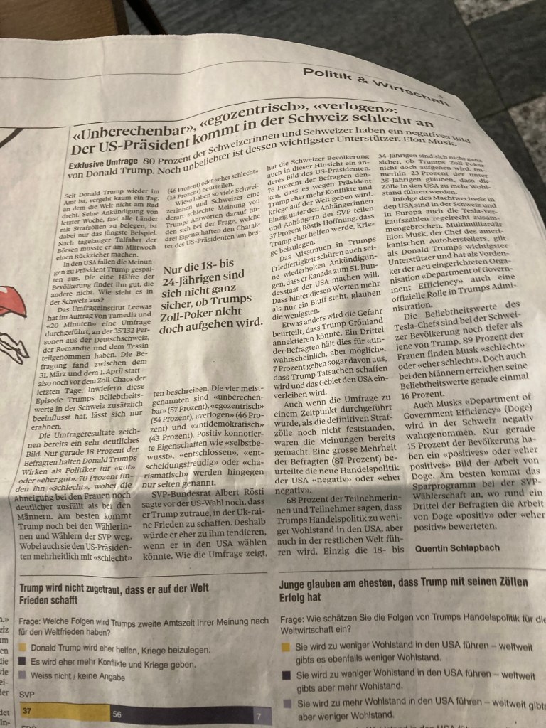 On Sunday, the 6th of April, I travelled to Lugano by train. I was impressed how punctual trains can be: the trains I took were operated by SBB, the Swiss state-owned railway system – no comparison to the Deutsche Bahn, the German state-owned railway operator. The reason is that Switzerland spends four to five times more money (per citizen) on their railway system than Germany.