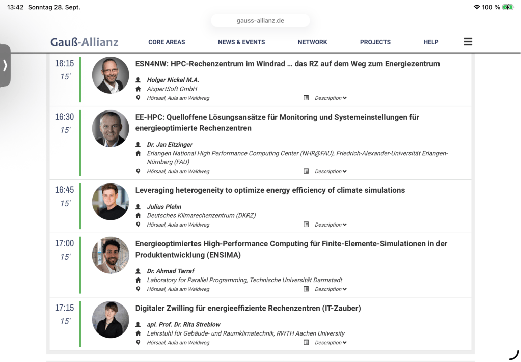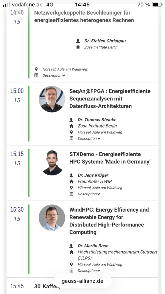 Because of my health problems mentioned I left after the following coffee break and skipped the rest second session on green HPC: