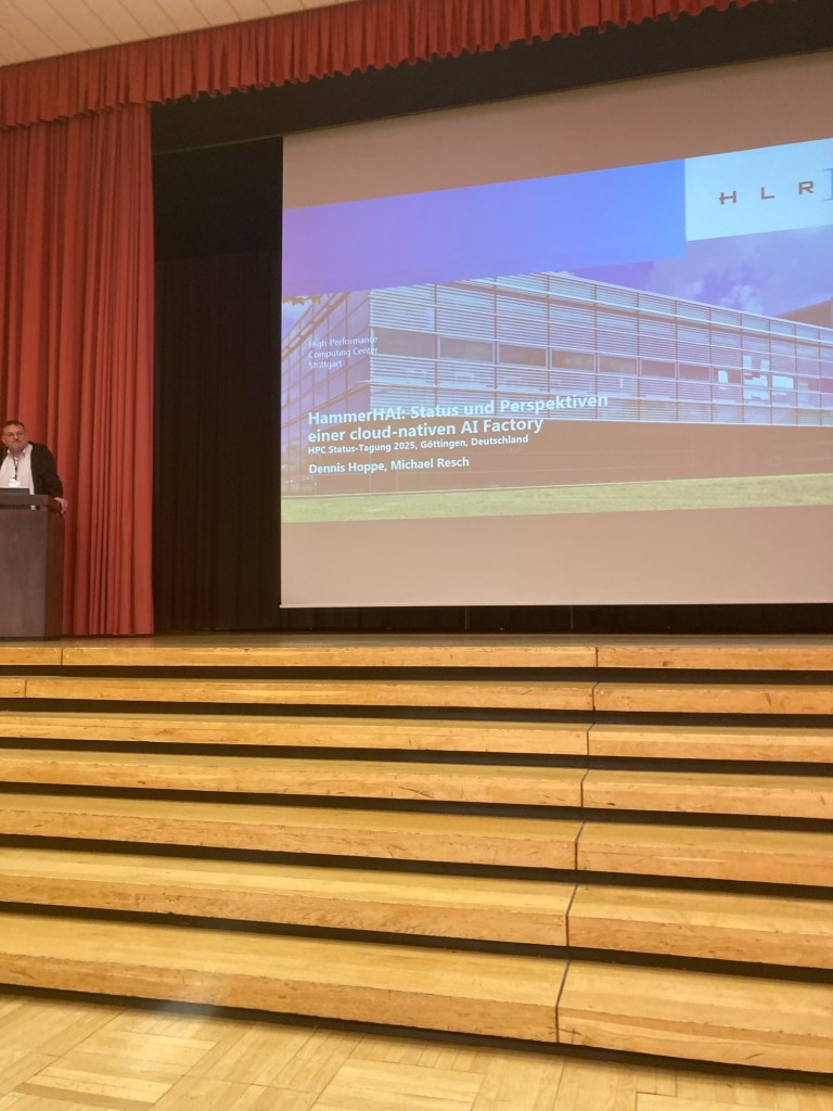 Prof. Resch again (replacing Dennis Hoppe who had an accident with his child 😉 talked about „HammerHAI: status und perspectives of a cloud-native AI factory“: last year, the EU issued a very short-term call for AI factories: the first one in Germany went to HLRS.